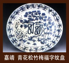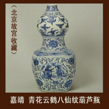 就拿造型来说,每个时代有每个时代的特点,而且有一些瓷器的造型就是这个时代有。比如在明代嘉靖的时候,嘉靖皇帝信道教,是历史上很有名的一个道君。那么这个时候,瓷器不管是造型还是图案纹饰,都出现大量与道教有关的这种题材。在造型方面,比如说,这个时候出现大量的葫芦瓶,葫芦型造型的瓶。咱们知道葫芦与道教有关系,而且它有些葫芦底下是方的,两节葫芦,底下是方的,上面是圆的,也有当然上下都是圆的。再比如说,这个纹饰方面,也出现大量与道教有关的,比如说八卦。另外就是说一些这个云鹤,仙鹤也与道教有关系。再比如说,这个时候还出现一些把松树树干盘成一个“福”字的。像这种东西,其他朝代就几乎很少见,就是讲这个时代特有的。