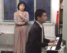 解说:杨峻教授是我国著名的钢琴家、教育家,他培养的学生多次在国内和国际钢琴大赛中荣获大奖。在杨峻教授的指导下,孙岩的钢琴水平进步很快,短短的五年时间里,他已经从一个喜好弹琴的孩子,成长为一名专业的钢琴演奏员。