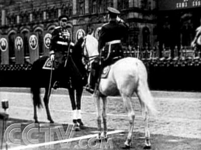 嘉宾:对。你看在阅兵式上,朱可夫骑一匹白马,罗科索夫斯基骑一匹黑马。