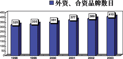根据AC尼尔森提供的数据,我们看到近几年来国际企业对中央电视台的关注越来越高,尤其是2002、2003年,中央电视台新增国际客户21家,超过前几年每年增长的数量。从投放额度上看,2001年前一直处于波动状态,始终保持在20亿左右;但从2002年开始这一状况得以改变,国际企业纷纷加大了在中央电视台的广告投放额度,2002年以来每年都保持了10个亿元以上的增长,2003年更是达到44亿元,已经超过央视广告收入的一半以上。