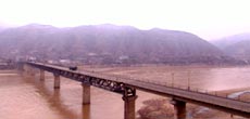 今天正式进入河南省。现在到站三门峡市,眼前这道大坝——三门峡大坝。坝体上写着八个大字,黄河安澜 国泰民安。