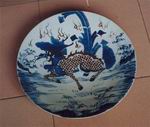 5、青花釉里红麒麟纹盘: 广西壮族自治区灵山县 龚明革的藏品, 专家初鉴为:清代中晚期 市场参考价格: 3000元。