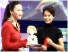 主持人:是一个娃娃,特别给你选了这样一个礼物,也衷心希望你经常来我们的节目,谢谢梅婷。